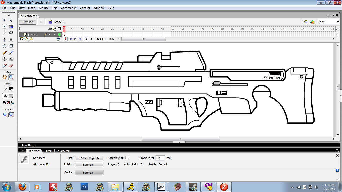 The second of those is what I actually decided to do, I have the magazine extended under the sight. Im going to work on doing simple animations for the gun with flash next, after I get it colored.