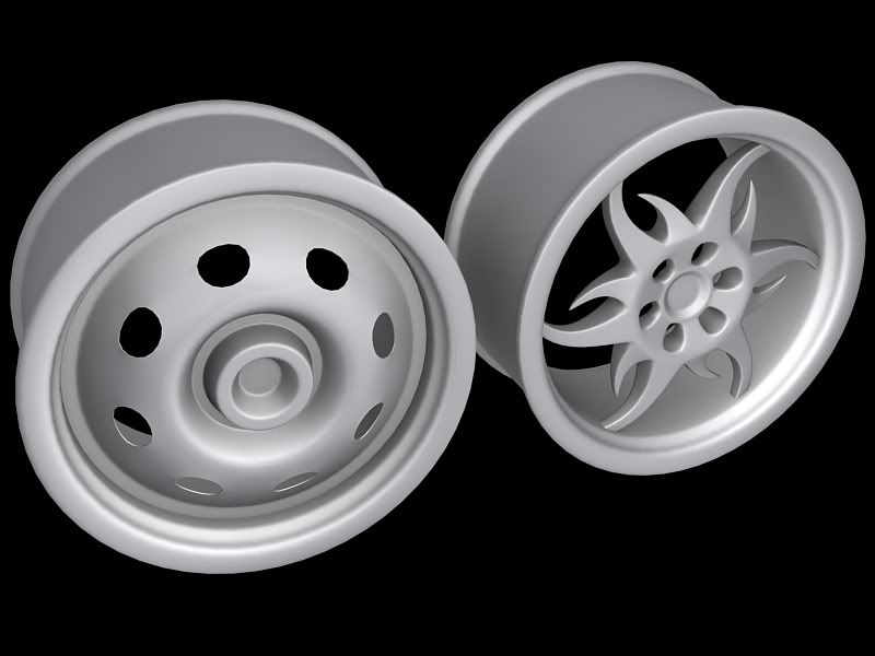 Gaying around, obviously not up to spec with any real rims or anything. First two I made up, though are probably similiar to some other rims out there, last one I sort of used a referance from ones I've seen like it. Even though this stuff is pretty simple, it's damned fun to do.