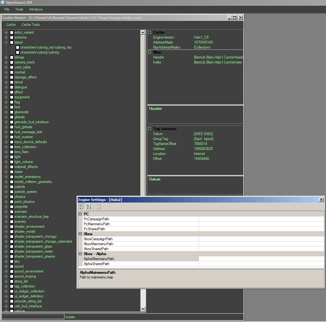 Just pushed some changes to the code repo that largely relate to CacheView in OpenSauceIDE. Opens all supported engine's cache files and displays their information. Haven't finished adding the UI code for tag extraction yet, however.