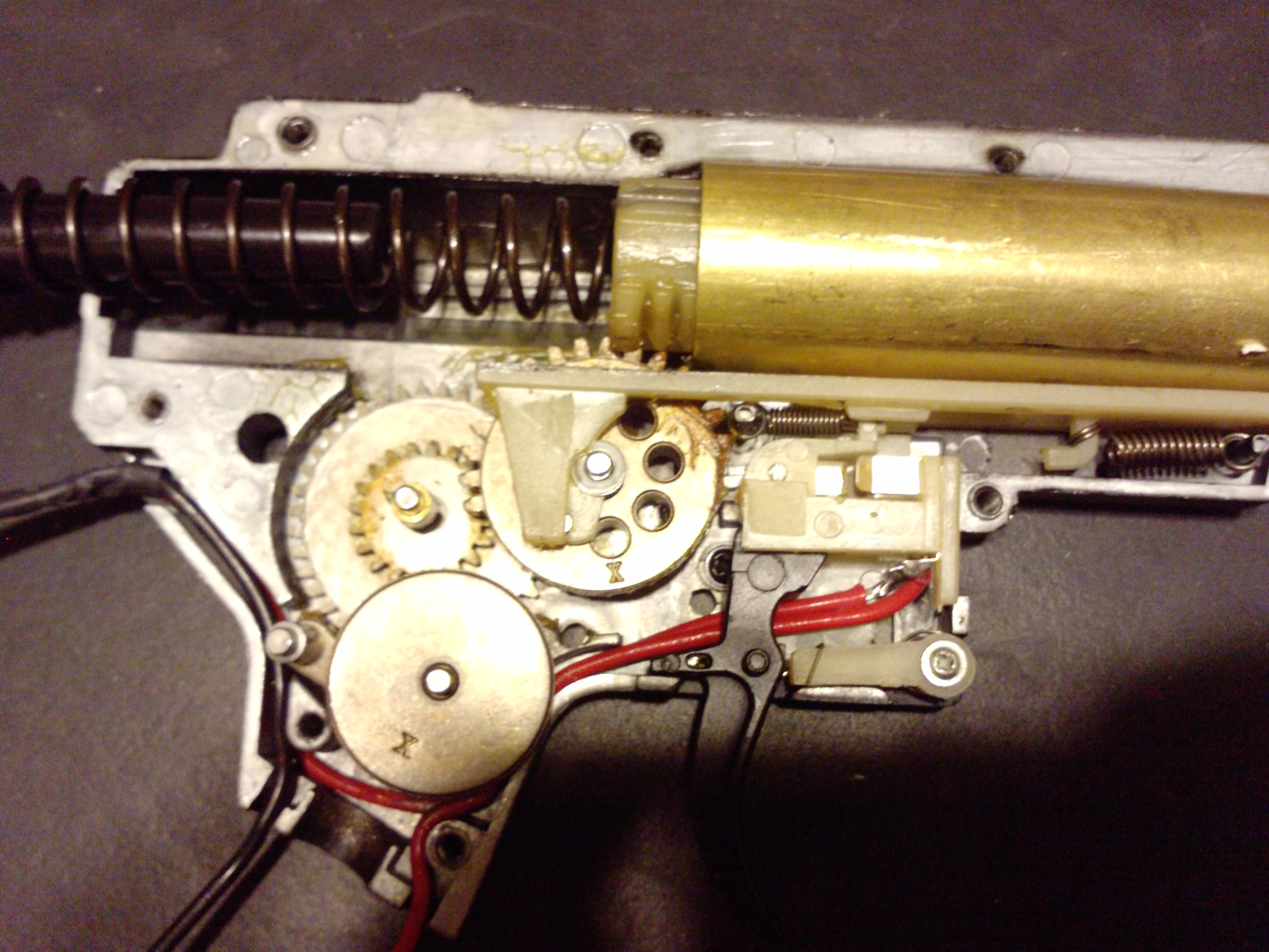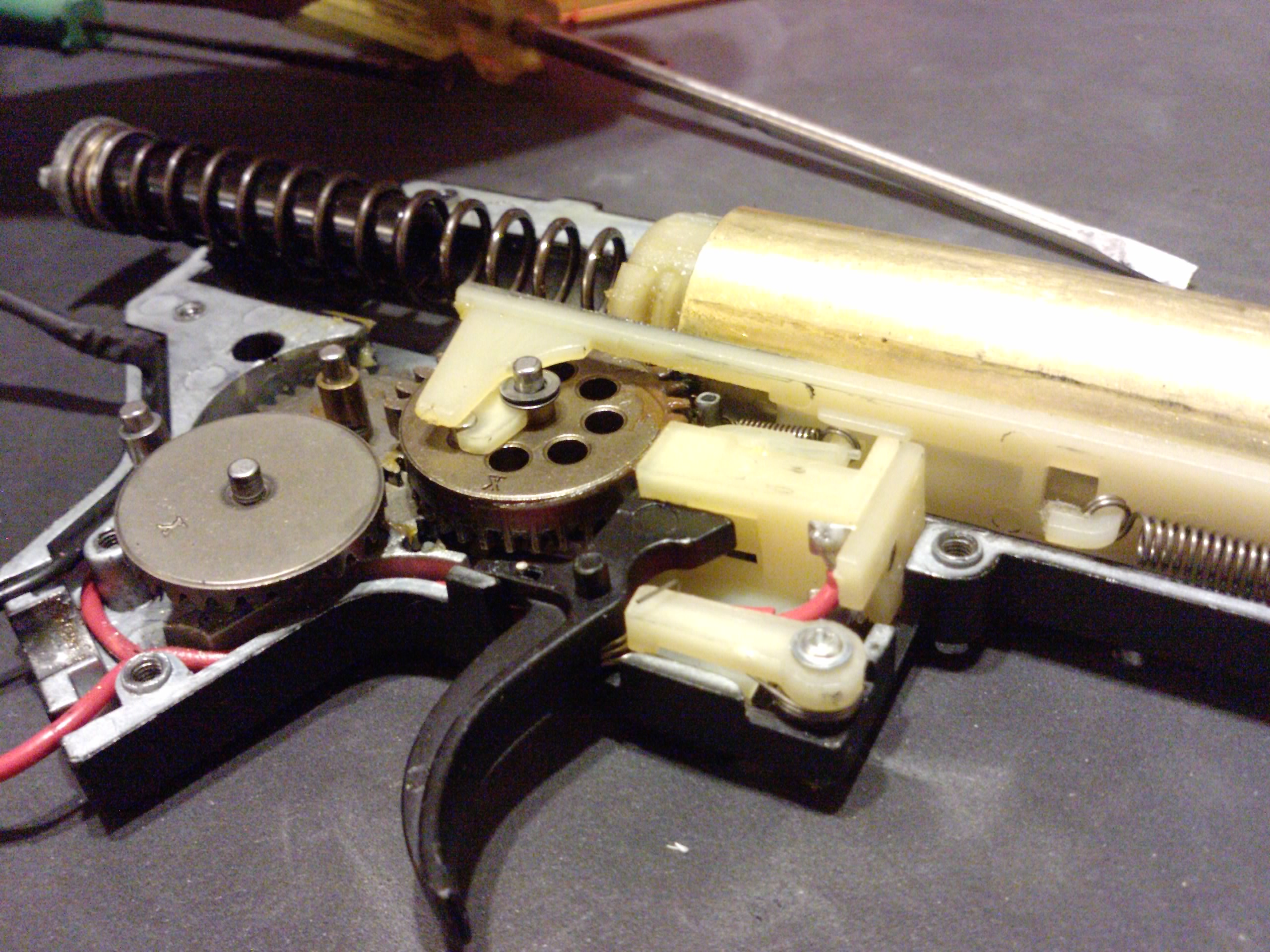 So, looks like it's time for me to break open my gun after all. After just my first game today, my gun broke down. And out of the stupidity between my friends and me, we tried to keep firing to see if it'll resolve itself. Well I stripped down all the basic components down to the gearbox, and I can already see some gear erosion on the motor. That was probably caused from us continuing to fire. So there is probably a complete jam in the gear box.:neckbeard: