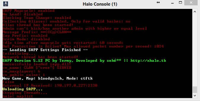 OK very good sehe will most definitely appreciate it. "maplist" is for the available maps you have on the server (CE, PC) or only CE? As ive tried it on the PC version and it gives exception on server and unloads sapp.dll then crashes. but on the CE all is well. I Have both PC and CE server Hosting the same gametypes and maps. bringing the best the the server to both worlds so nothing is different from the other. So that might be a bug. I dont have my server on 24/7 more like 20/7 as i host my servers locally but i have good bandwidth.