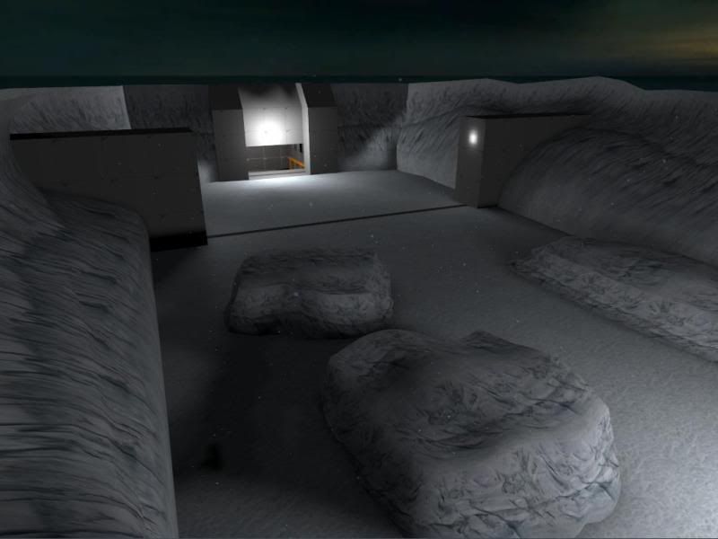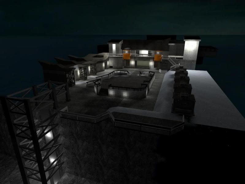 So far, the dock, heliport, tank hanger, canyon and warhead storage areas are connected. However only base geometry in these areas have been close to or are 100% finished. All lighting and textures are subject to change. The rest of the areas are still being worked on and will be integrated at a later time. Currently both basement levels of the tank hanger, the communication towers and the basement levels of warhead storage are being worked on.