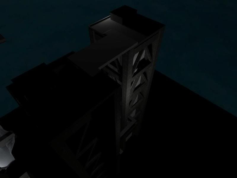 These communication towers alone take up more brushes than the rest of the map put together. 60 stories of stairs will do that. Not quite sure what else I could do with them though. It still runs smoothly though and I haven't done a whole lot of optimizing yet, so that's a good sign. Sorry about the dark screenshots.